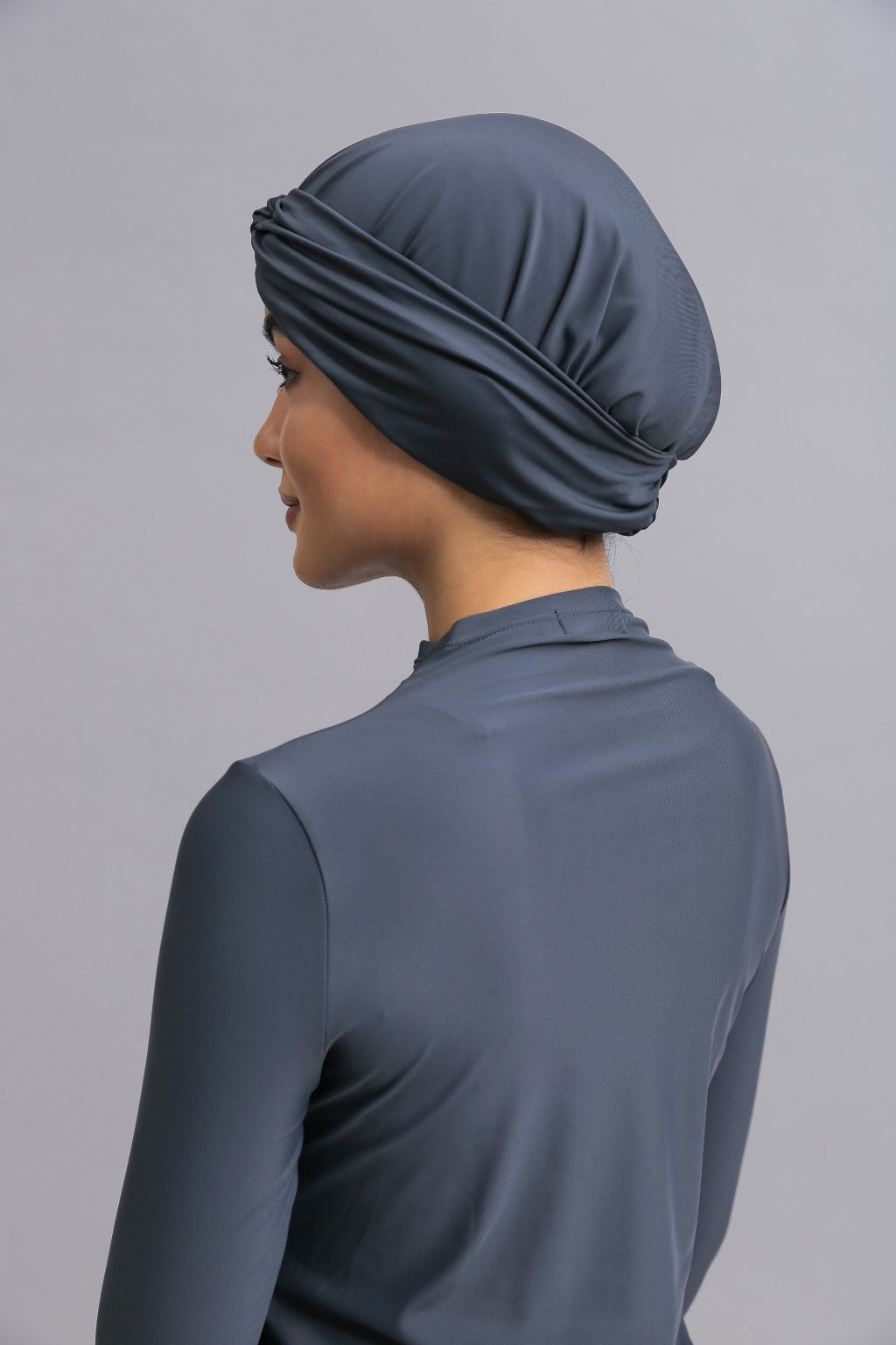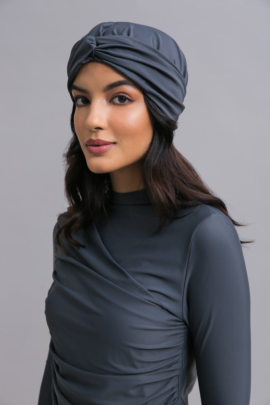 Knot front ruched active/swim turban, crafted from our signature 4way stretch, ultra lightweight dry-fit fabric which is breathable, sweat releasing and quick-drying; perfect for swimming and the most active workouts.