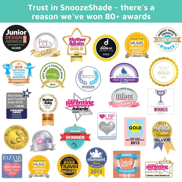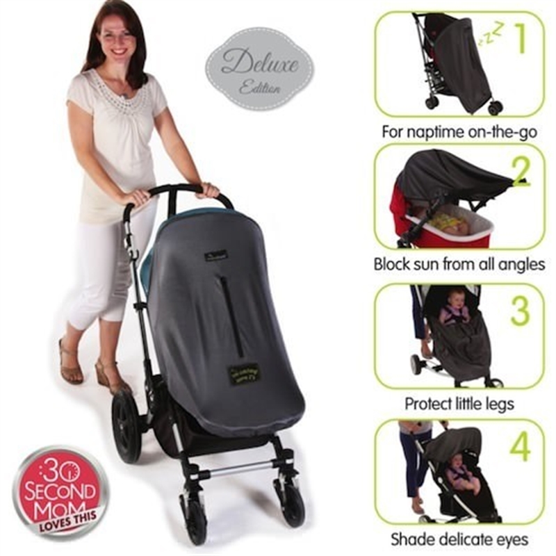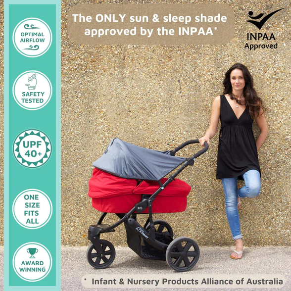 The deluxe version of our best-selling sun shade and sleep aid for all prams, buggies and strollers