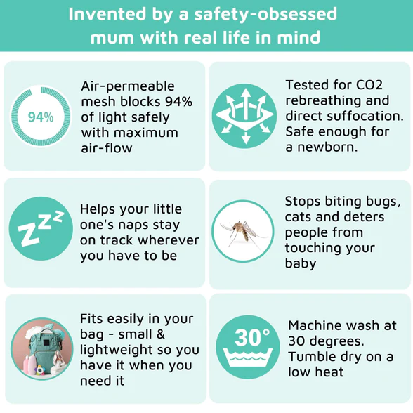 Blocks 97.5% of the sun's UV rays and creates a cosy place for baby to nap on-the-go