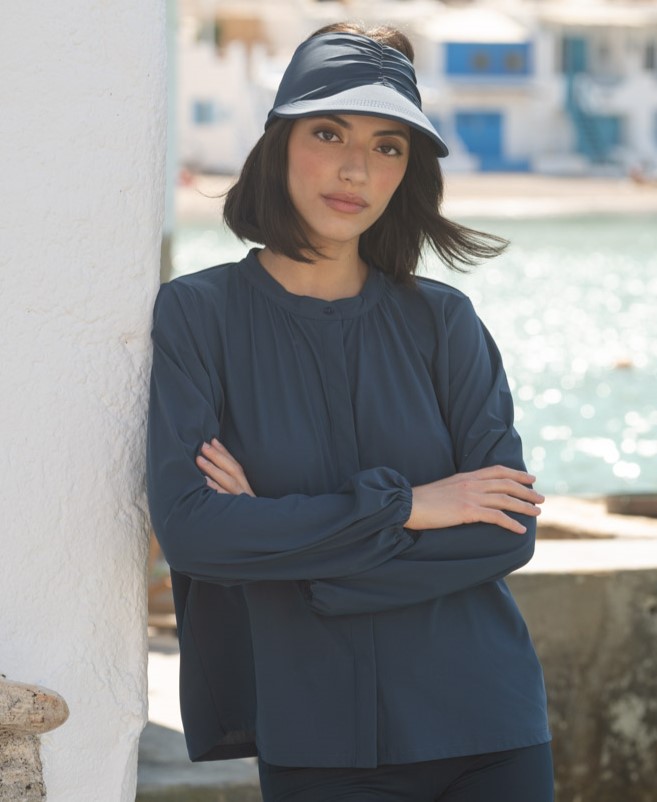 Crafted from innovative, high-performance fabric, the cap offers excellent UV protection to help shield your face from the suns rays. Its lightweight, breathable material ensures all-day comfort, making it perfect for warm, sunny days. Thanks to its reversible design, you get two classic looks in one versatile visor. Choose from two timeless colour combinations: Navy Blue / Black and White / Nude – effortlessly matching your outfits while staying sun-safe.