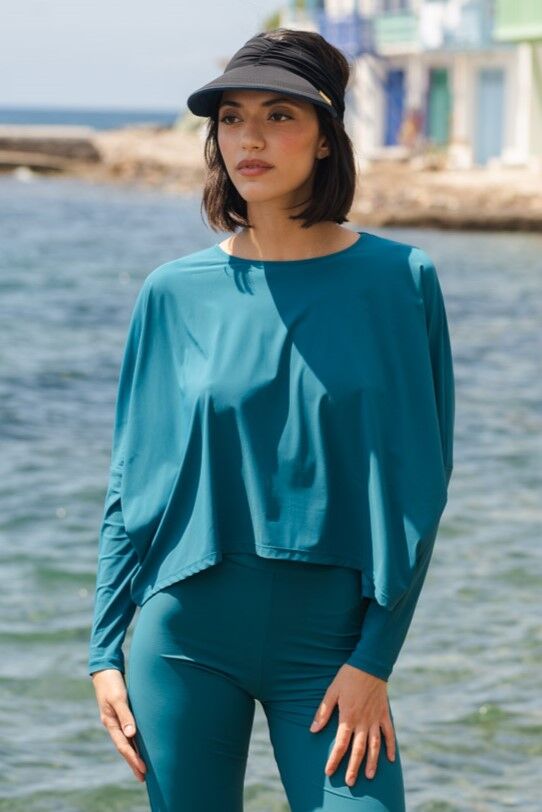Experience the perfect harmony of fashion and function with this beautifully stylish and sun protective top, designed for women who love spending time outdoors without compromising on elegance or skin safety. Thoughtfully crafted from premium Italian fabric, this top features a sophisticated batwing sleeve and a flattering high-low hemline—offering an effortlessly graceful silhouette that transitions seamlessly from daytime adventures to sunset gatherings.