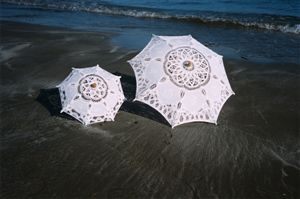 NEW beautifully laced parasols. Unfortunatley these do not have an SPF rating.