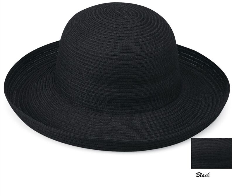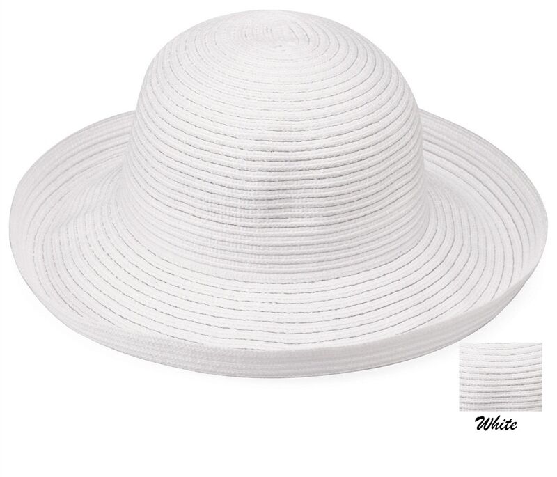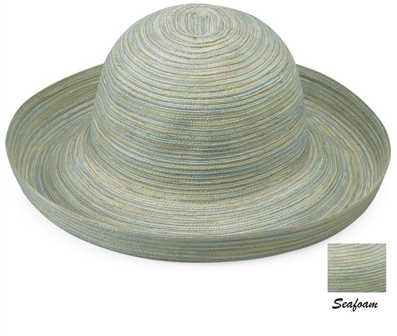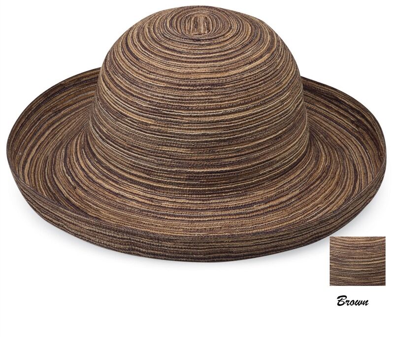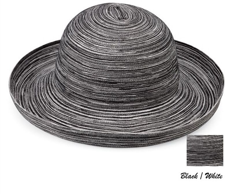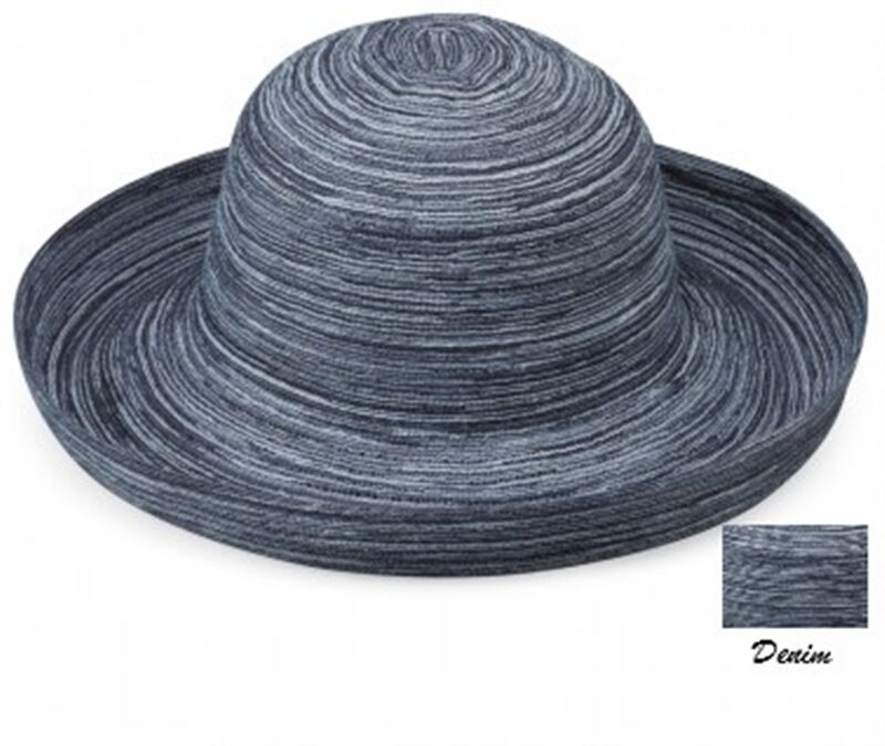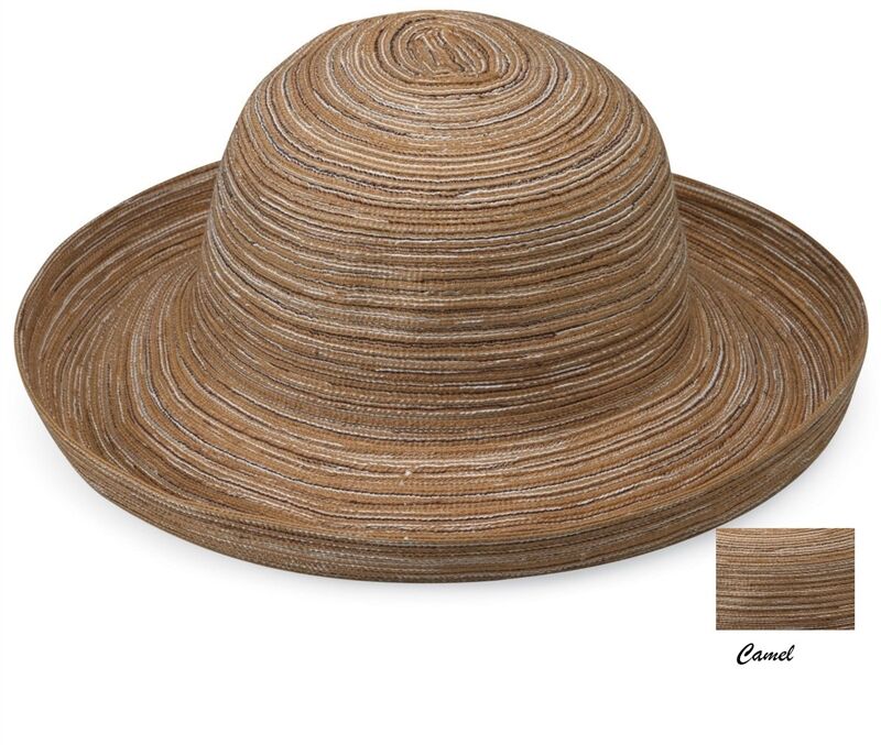 Light-weight, cool and always elegant. The Sydney hat is made with subtle colours woven together into a thin, breathable polyester braid that coils into a circular crown. A generous 3 3/4"brim turns up stylishly on the edges. Hidden internal drawstring adjusts to fit most sizes. 100% Poly-Braid. Handwash cold. Wide Brim Ladies Hat