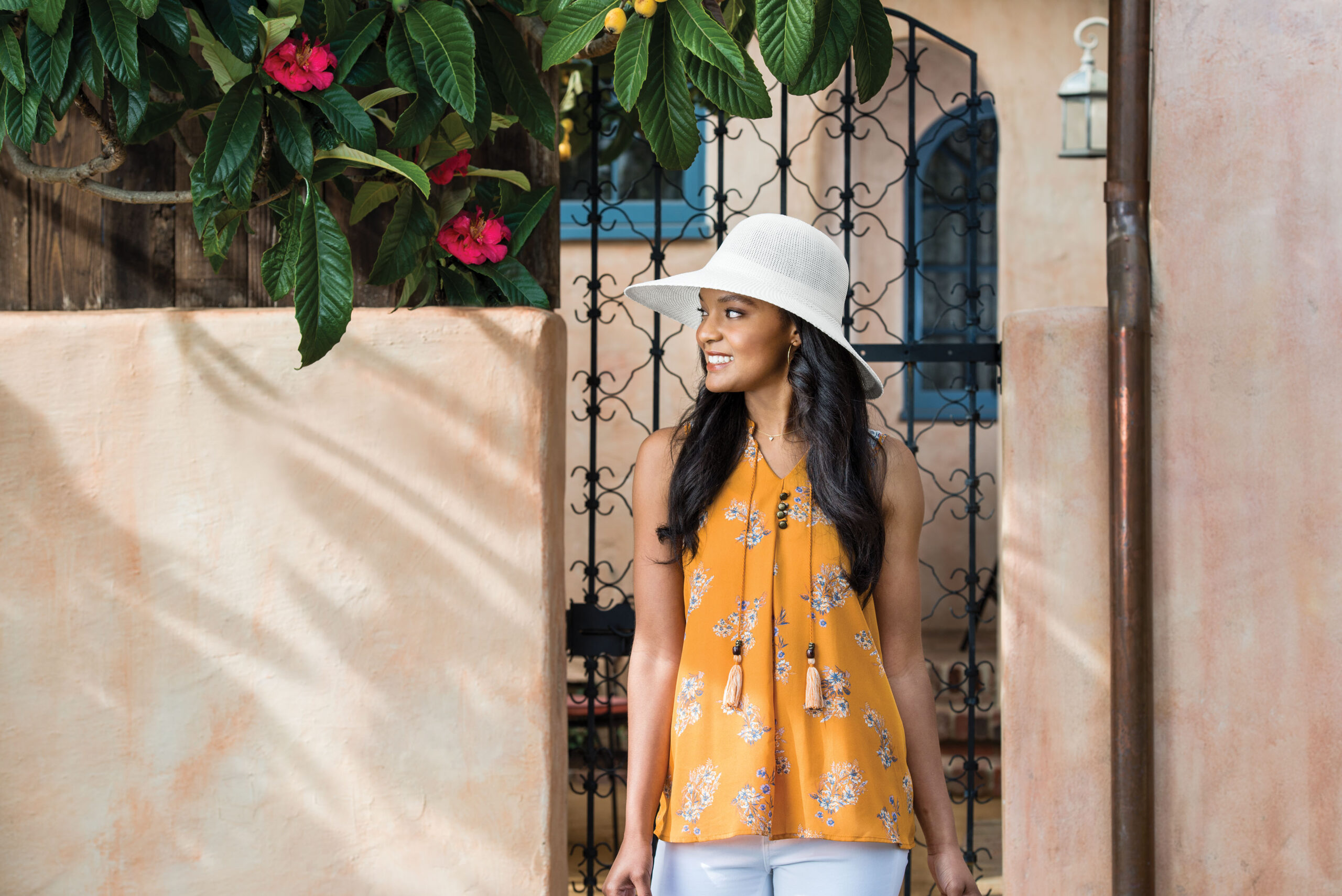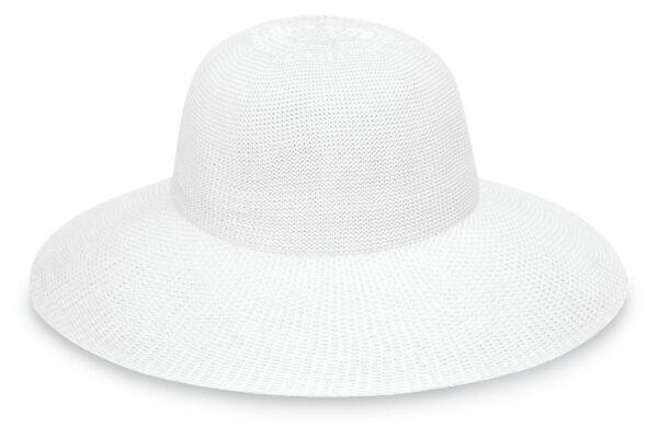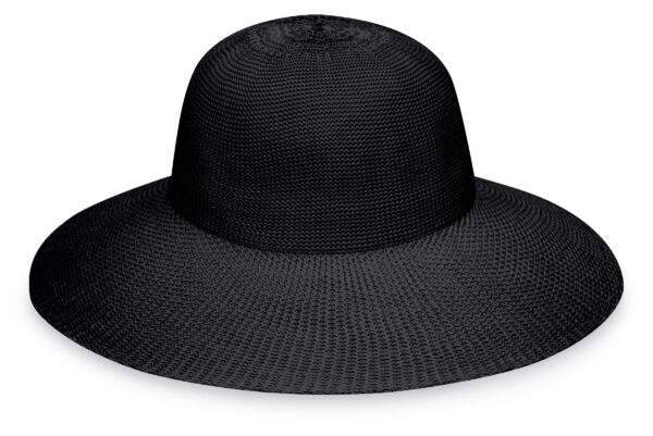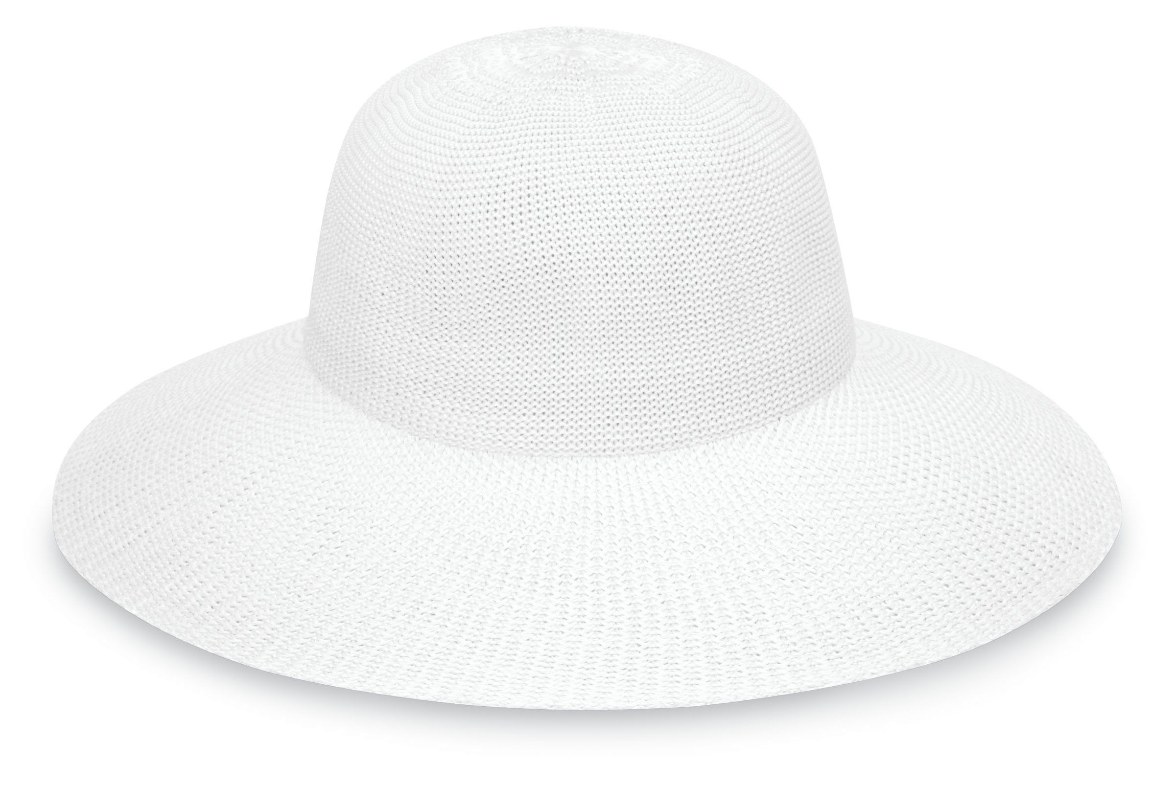 We've taken one of your favorites and added a touch of drama. This hat features the same round crown as the Victoria but adds a longer 4 1/2" brim for elegance, as well as sun protection. The interior adjustable drawstring ensures a snug fit. Don't forget your dark sunglasses and autograph pen! 100% poly-straw. Handwash cold. Extra Wide Brim Ladies Hat