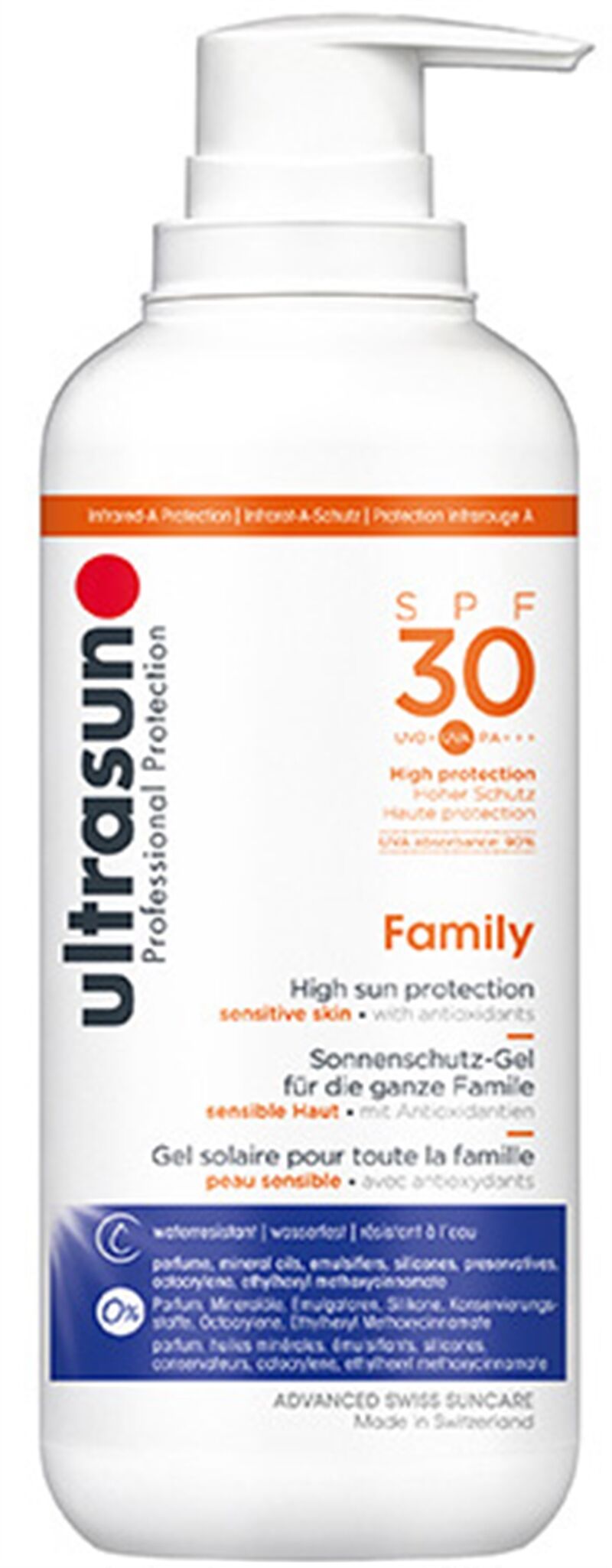 Ultrasun Family 30 delivers very high all day protection (UVA 93% and UVB SPF30) with just one application per day.