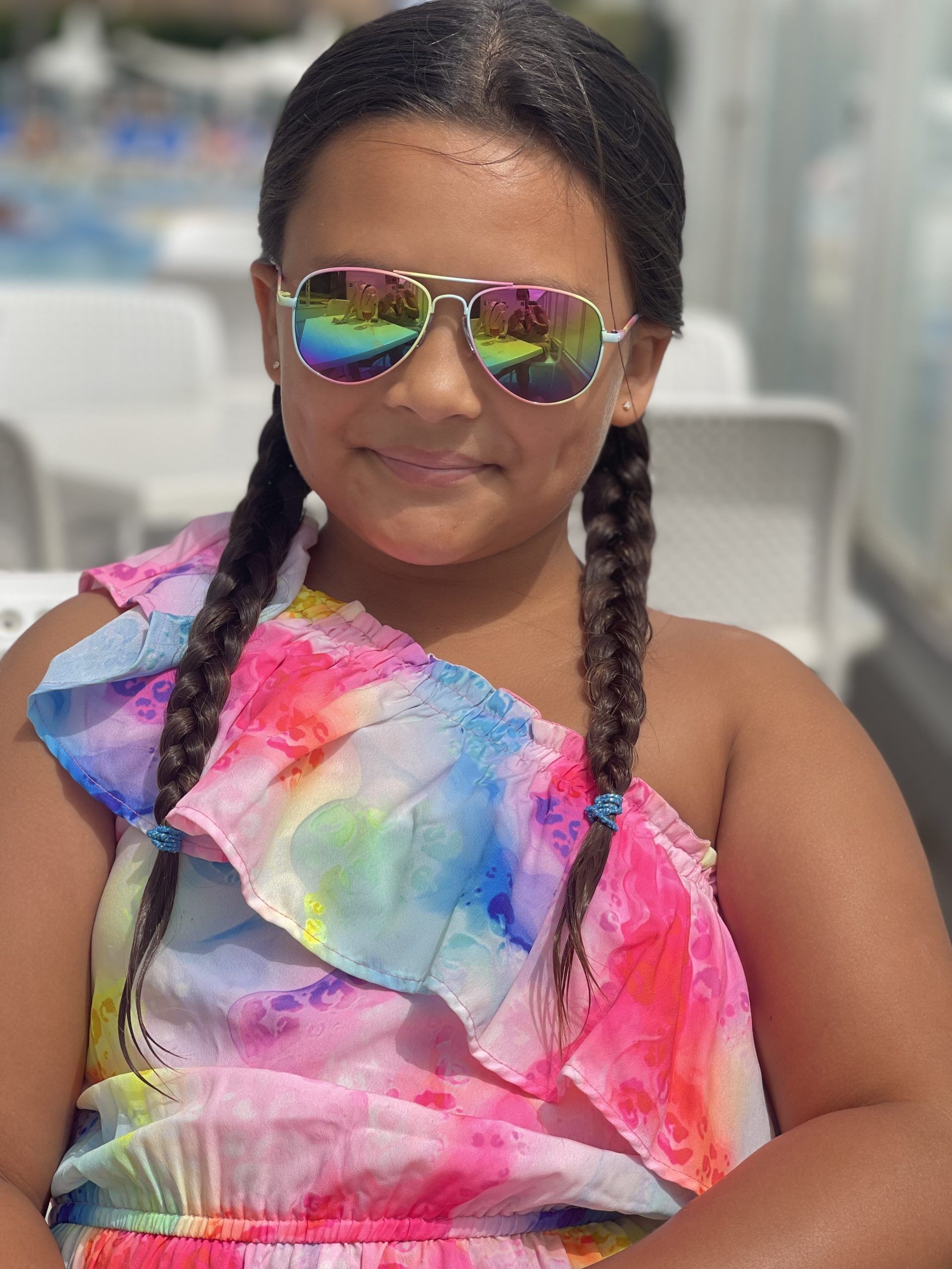 Featuring a dreamy pastel rainbow design, these sunglasses will effortlessly coordinate with any outfit. Whether it's a playful summer dress or casual jeans and a t-shirt, the soft, muted hues of pink, lavender, mint, and baby blue will add a touch of whimsy and charm. The stylish, lightweight frame ensures all-day comfort, while the vibrant color palette complements every look.