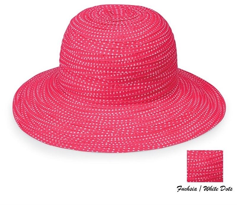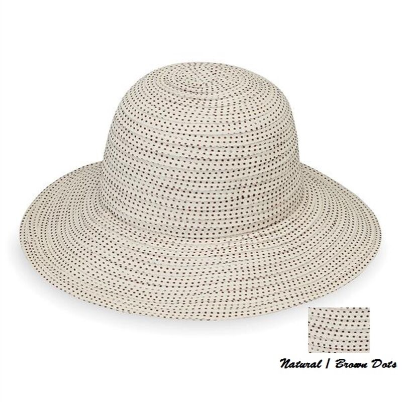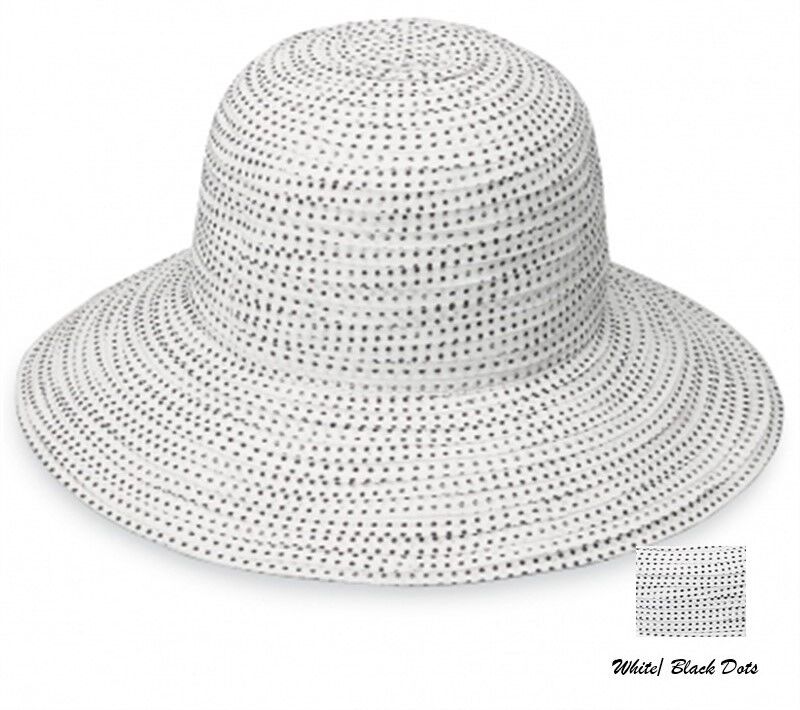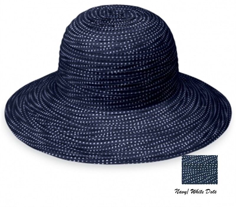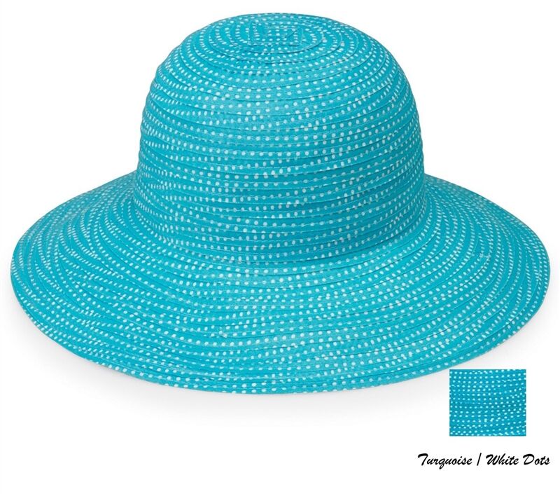 The Petite Scrunchie is a charming cover-up for fashionable ladies who need a smaller sized hat. The wide 3 1/2" brim offers excellent sun protection and style. Even better, the shape bounces back no matter what bag or purse it gets packed into. 55 cm. Wide Brim Petite Ladies Hat. Packable.