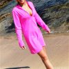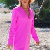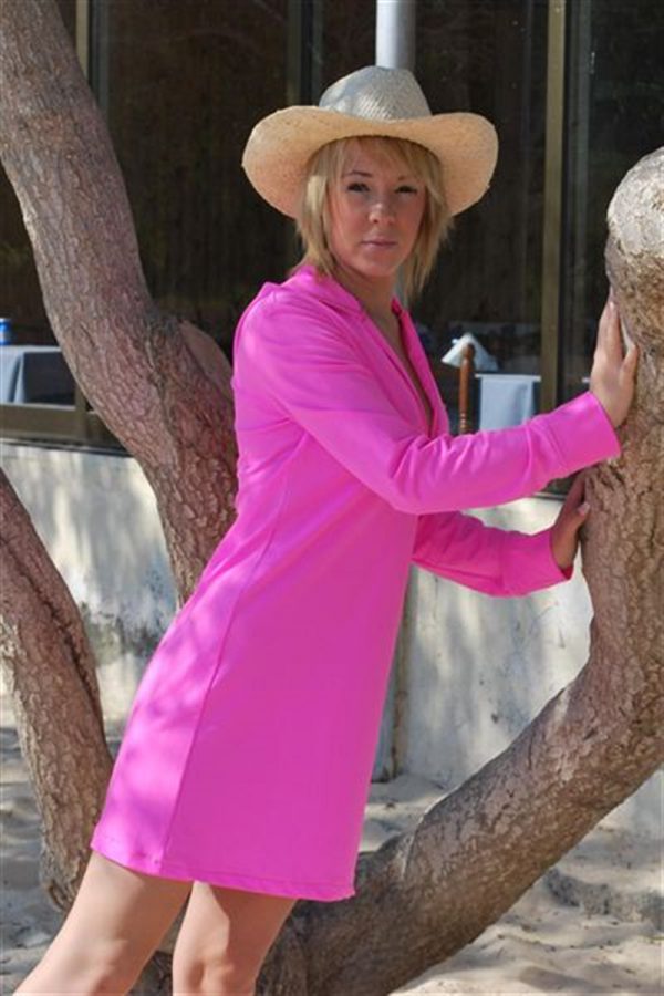 Low Cut Hooded Sun Protective Dress , perfect worn on its own or with drawstring trousers or leggings. Just slip on, look fabulous & go ... This garment is pictured here in colour available : Candy Pink ( Very Bright Pink )