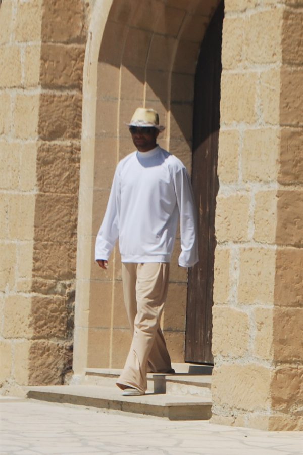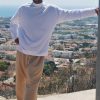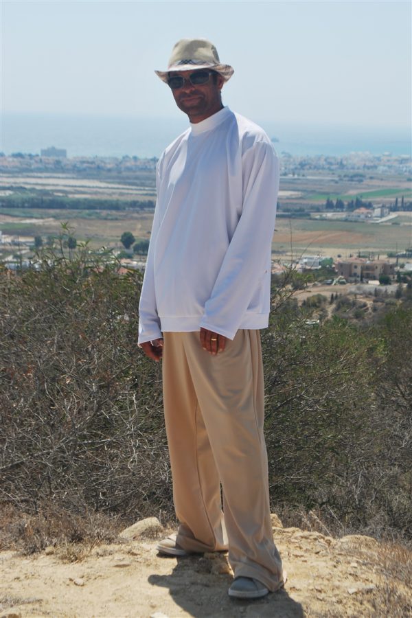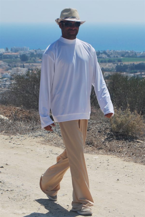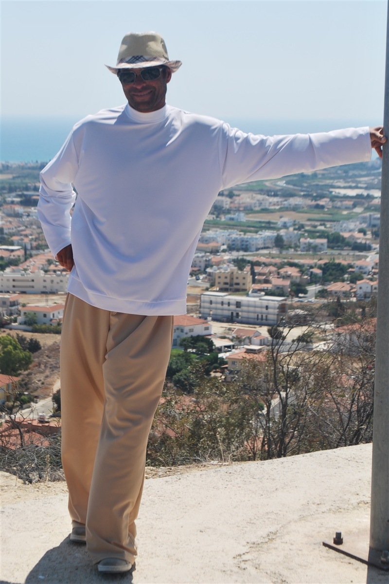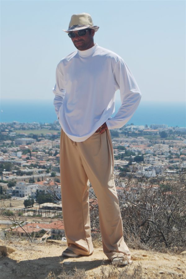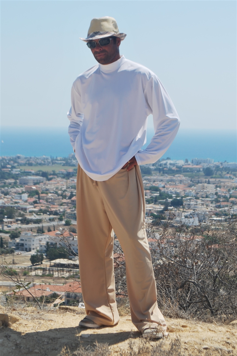 Plain and comfortable loose fitting sun protective trousers with drawstring.