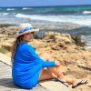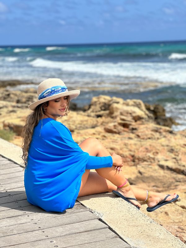 Stunning simple UV Protective Abaya inspired dress thigh length. Fitted ruched sleeves. Round neck beautifully feminine design great for everday quick sun protection.