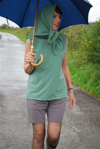 Square shaped fabric fold corner to corner and simply tie for elegant sun protection. Head and Face UV sun protection
