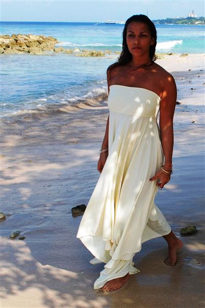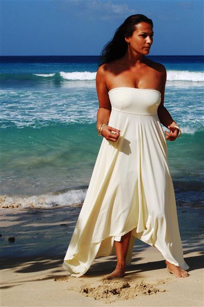 Stunning full length UV Protective waterfall strapless dress UPF 50+.