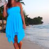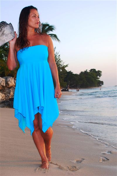 Stunning short length UV Protective waterfall strapless dress.  UPF 50+