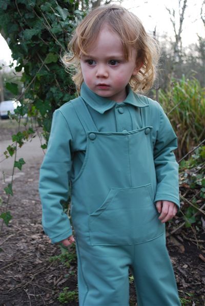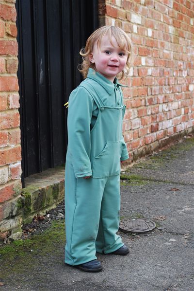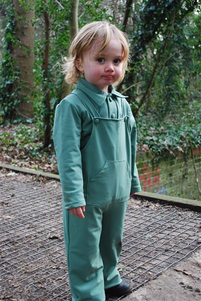 Cute Dungaree Trousers with fabric covered button fastenings & kangaroo pockets.
