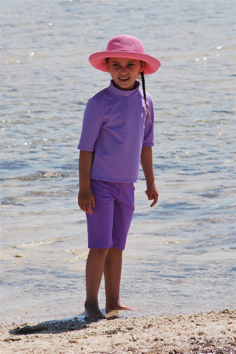 Slightly longer cycling shorts with sun protection. Quite tightly fitted, great for sports as the fabric moves with the body. Elasticated waistband and built in sun protection. Machine Washable, Chlorine Resistant, Quick Drying and Breathable Fabric.
