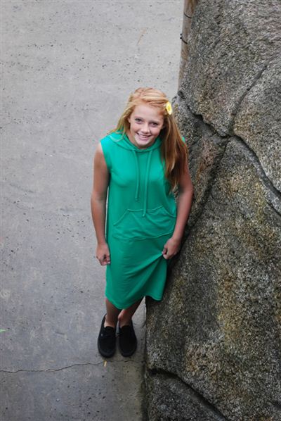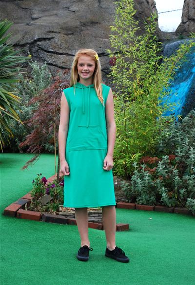 Knee length dress version of the hooded top. This is a great item to add to your child's wardrobe as the hood allows SPF protection the head and back of the neck.