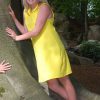 Longer version of a Polo neck top. It is a sleeveless dress that comes down to the knee protecting the legs. Pair with SunSibility sun protective leggings for extra coverage on the legs. Machine Washable, Chlorine Resistant, Quick Drying and Breathable Fabric. This garment is pictured here in the colour: Mimosa(Bright Yellow)