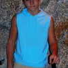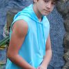 Teenage Sleeveless Sun Protective Hooded Top, great way to protect the head and back of the neck and still look summery and on trend. Looks great with the SunSibility Drawstring Trousers. Machine Washable, Chlorine Resistant, Quick Drying and Breathable UPF 50+ Fabric. This garment is pictured here in the colour: Nouvella(Sky Blue)