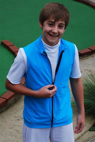 A cool Unisex Sun Protective Sleeveless Tracksuit Top. Comes in all colours with a contrasting black zip. A classic looking design that can be worn over many of our sun protective tops, skirts and trousers. Machine Washable, Chlorine Resistant, Quick Drying and Breathable UV Protective Fabric. This garment is pictured here in the colour: Laguana(Bright Blue)