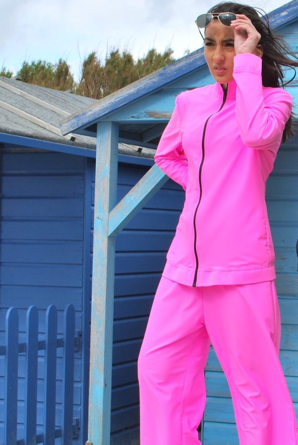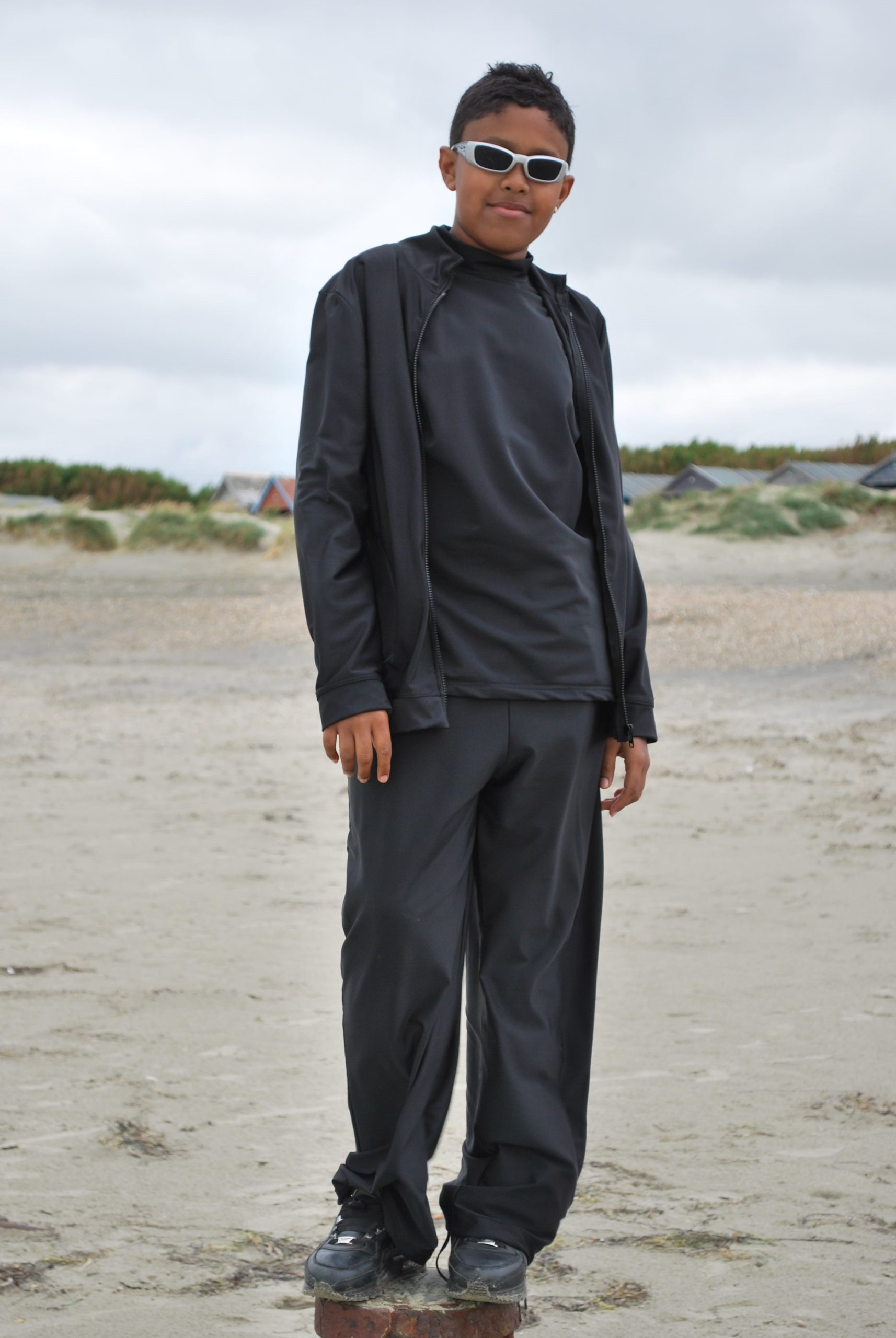 This two piece sun protective set consists of a Teenage Tracksuit Top with contrasting black zip and a pair of Teenage Drawstring Trousers. This amazingly comfortable and supremely sun aware outfit is a great buy.