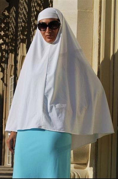 Sun Protective Burkha that covers head, neck & shoulders. Head and Face UV sun protection This garment is pictured here in the colour: Bianco(White)