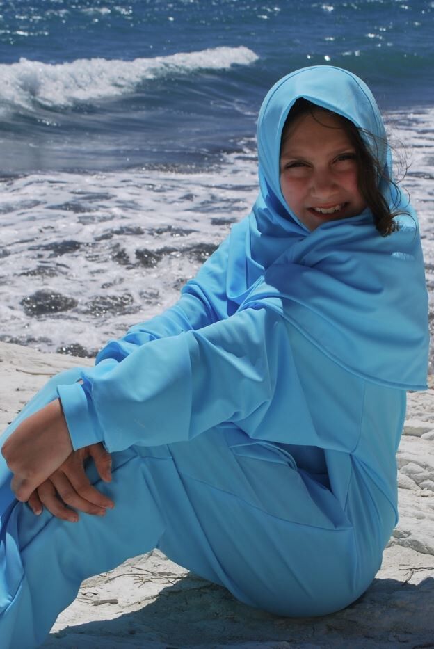 An attractive UV Protective Hijab inspired scarf to protect the head ears neck and shoulders. Light and easy to travel with too.