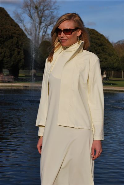 Classic Panelled Jacket. This jacket has a wider firmer panel on one side. Elegance is key ... Sun Protection with Style! This garment is pictured here in the colour: Vanilla(Cream)