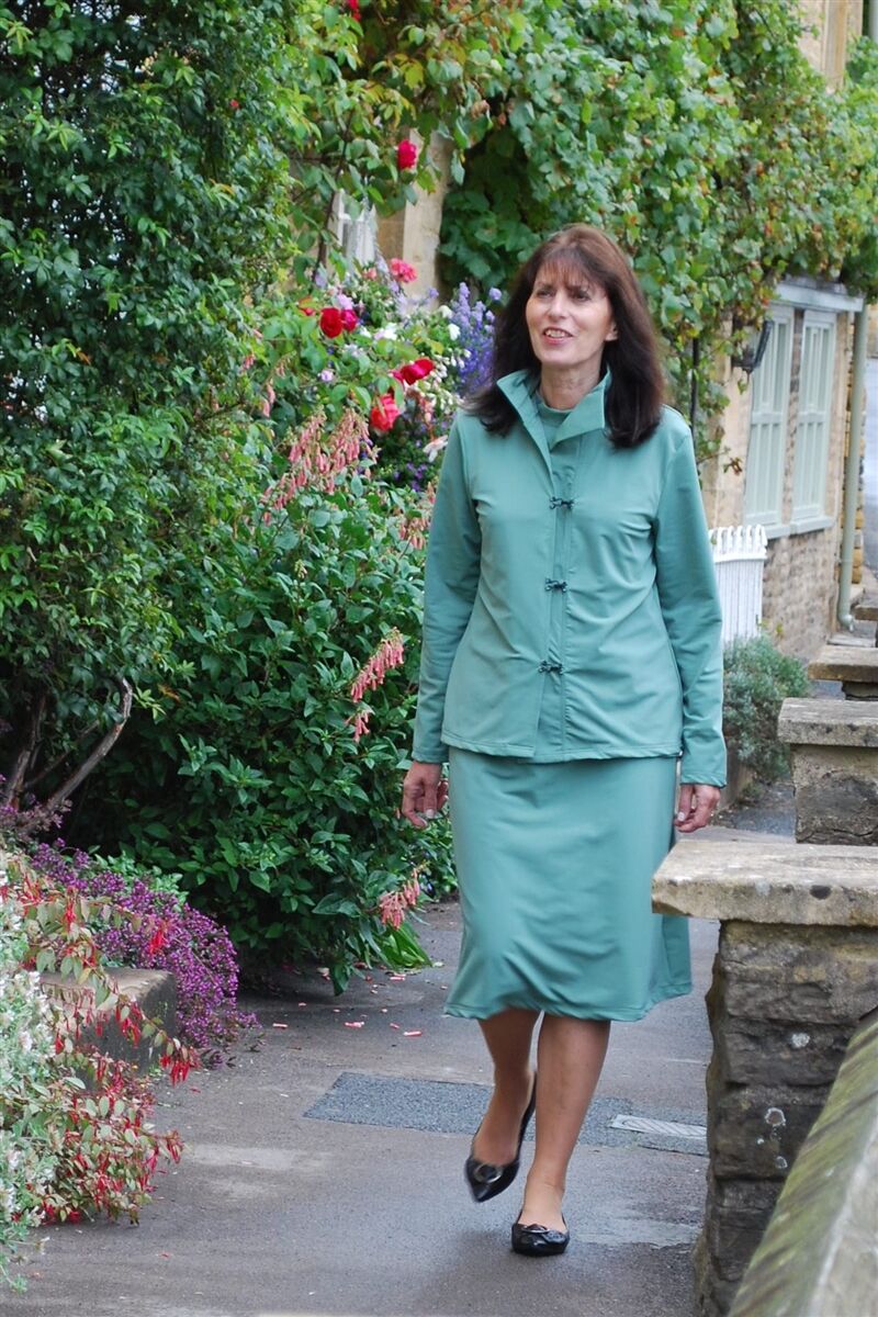 An elegant and flattering short box shape sun protective jacket with mandarin collar. The jacket has oriental hook and eye fastenings. Great as a second layer and to complete an outfit. Looks so smart. Breathable Fabric, Chlorine Resistant, Quick Drying & Machine Washable at 40 degrees. This garment is pictured here in the colour: Salvia(Jade Green)