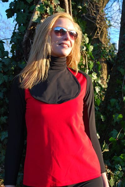 The innovative sun protective detachable collar and sleeves ( two piece ) set is designed to protect the neck and arms. The collar is simply slipped over the neck to create a roll neck and the ‘bib’ covers all vulnerable areas on the upper chest and works with most necklines.