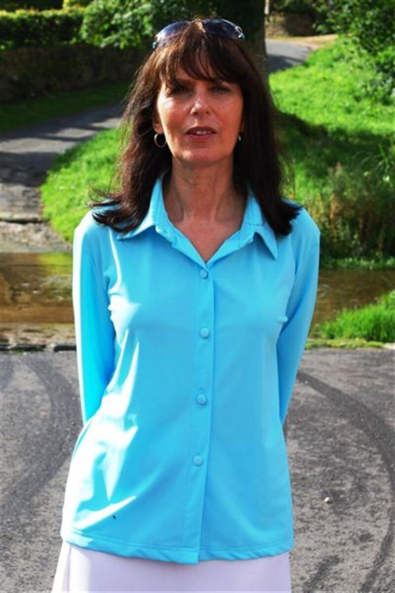 Go for chic, casual or cool with SunSibility’s stunning sun protective long sleeve shirt. A shaped style for an unashamedly feminine look, with self-covered fabric buttons. Breathable Fabric, Chlorine Resistant, Quick Drying & Machine Washable at 40 degrees. This garment is pictured here in the colour: Nouvella