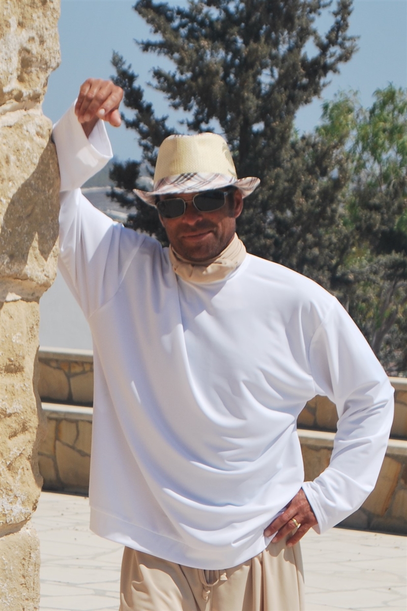 This sun protective T-Shirt is a basic long sleeve top for men with no pockets. Works well with the detachable collar.