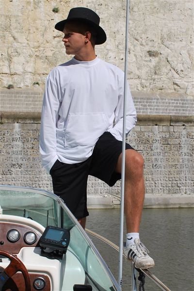 UV Protective Drawstring Board Shorts with Pockets. These can be doubled but not on pockets. This garment is pictured here in the colour: Bianco(White)