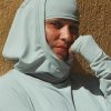 The last two pictures the Adult Hood is worn with the Skull Cap.