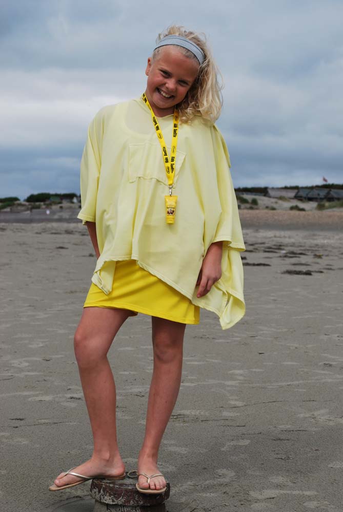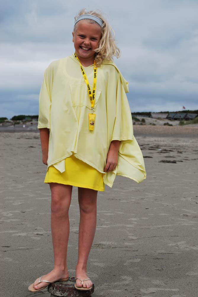 On teens the poncho will come up about hip length. Machine Washable, Chlorine Resistant, Quick Drying and Breathable Fabric. This garment is pictured here in the colour: Zolfo(Lemon)