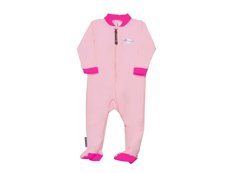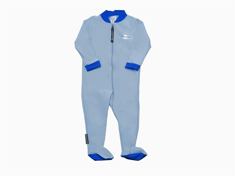 Stingrays new baby sunsuit with full sun protection for arms, legs and feet! The Baby Stingray Sunsuit has long sleeves and long legs and is suitable for in and out of the water.