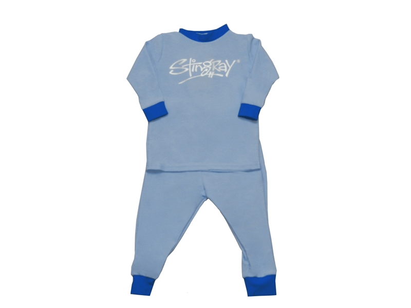 Stingrays baby/toddler 2- piece sunsuit with full sun protection for arms and legs. The sunsuit consists of a long sleeve top and long leggings and is suitable for in and out of the water but any place, any where outdoors be it beach, pool or playpark also fantastic for baby swimming lessons too.