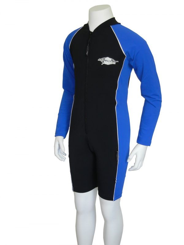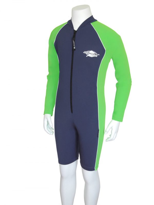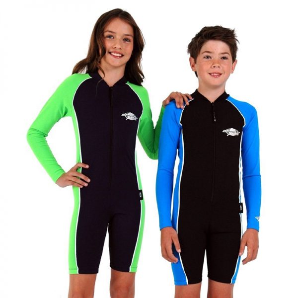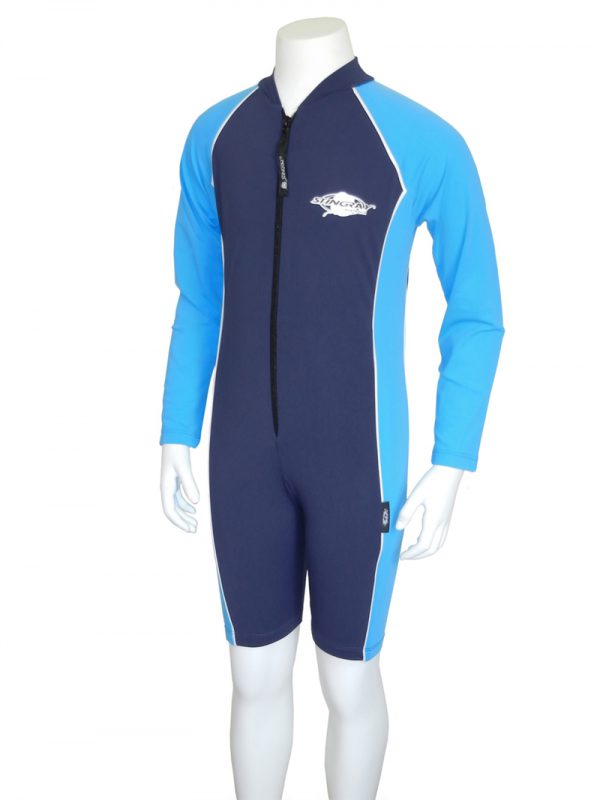 Sunsuit with long-sleeves and front zip. The sunsuit is made from excellent Chlorine resistant fabric which is cool, soft, durable and quick drying with maximum sun protection rating - UPF 50+ which blocks > 97.5% of the suns UV radiation giving excellent UV protection - Comfortable to wear, excellent stretch and recovery - retains colour and shape.