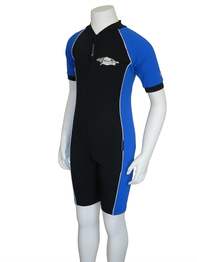 Raysuit (sunsuit) with short sleeves, high collar and front zip. The sunsuit is made from excellent Chlorine resistant fabric which is cool, soft, durable and quick drying with maximum sun protection factor - UPF 50+ which blocks > 97.5% of the suns UV radiation giving excellent UV protection - Comfortable to wear, excellent stretch and recovery - retains colour and shape.