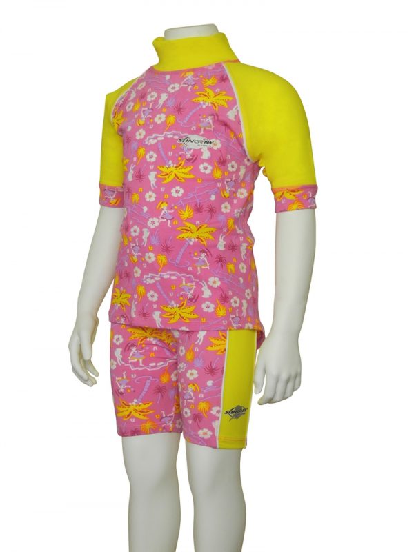 Girls pretty UV rash shirt and shorts set. Available in soft Lycra fabric with maximum sun protection rating - UPF 50+ which blocks > 97.5% of the suns UV radiation giving excellent UV protection.