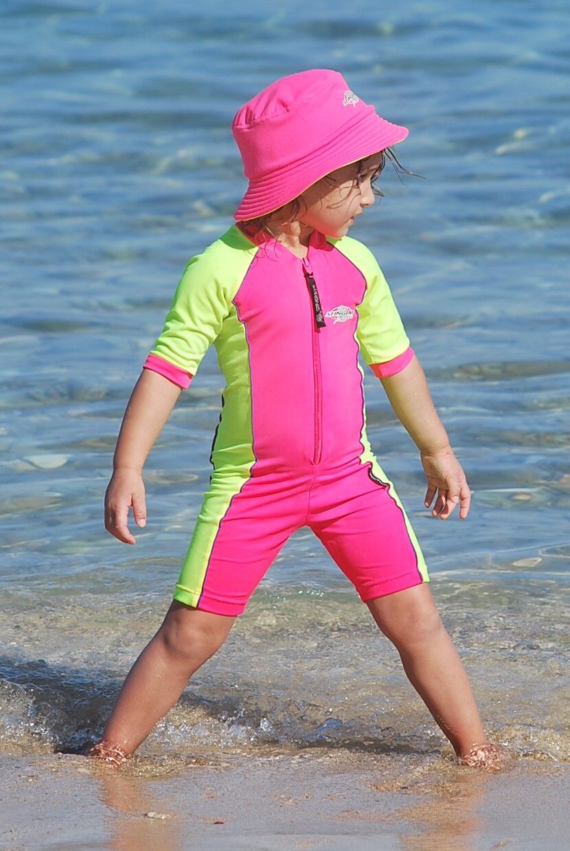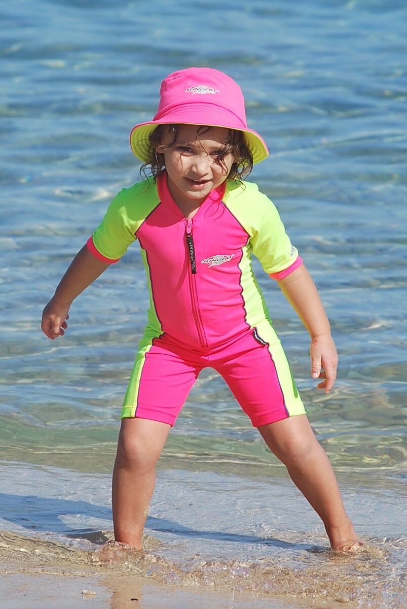 The sunsuit is great for swimming or outdoor activities - comfortable to wear, excellent stretch and recovery - retains colour and shape. Team-up with a matching cap for increased sun protection (cap extra cost) and some beach shoes for perfect play.