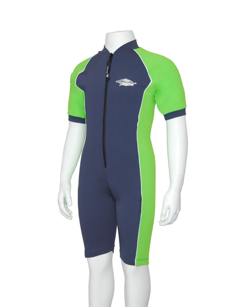 Stingrays No.1 Seller - Kids sunsuit (raysuit) with front zip and high collar. The sunsuit is made from excellent Chlorine resistant fabric which is cool, soft, durable and quick drying with maximum sun protection factor - UPF 50+ which blocks > 97.5% of the suns UV radiation giving excellent UV protection.