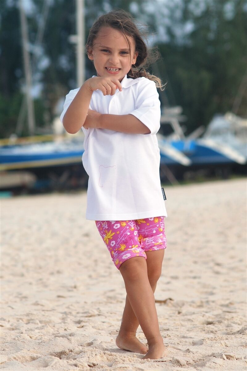 The smallest size for these polo shirts is age 4. For smaller sizes please view the Polo shirts in the SunSibility Collection.
