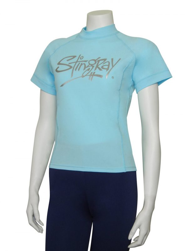 Ladies Surf Shirt - made from excellent Chlorine resistant fabric which is cool, soft, durable and quick drying with maximum sun protection factor - UPF 50+ which blocks > 97.5% of the suns UV radiation giving excellent UV protection - Comfortable to wear, excellent stretch and recovery - retains colour and shape.