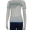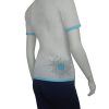 Ladies Surf Shirt with designs on the front and back - made from excellent Chlorine resistant fabric which is cool, soft, durable and quick drying with maximum sun protection factor - UPF 50+ which blocks > 97.5% of the suns UV radiation giving excellent UV protection - Comfortable to wear, excellent stretch and recovery - retains colour and shape.