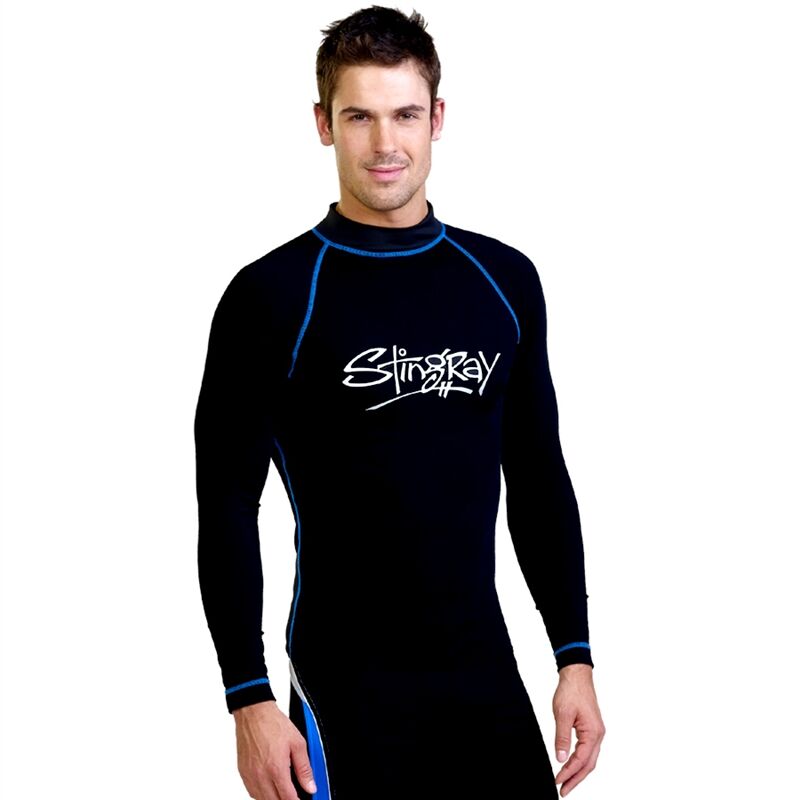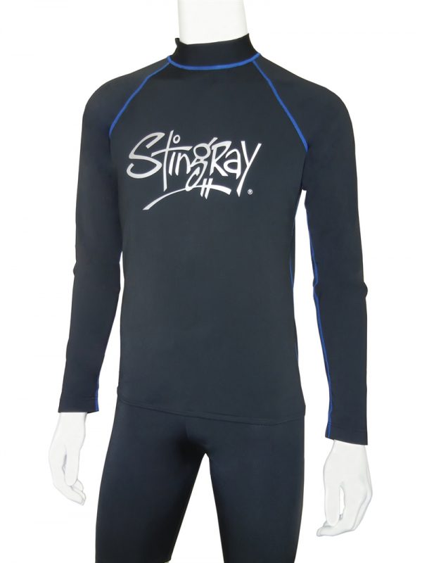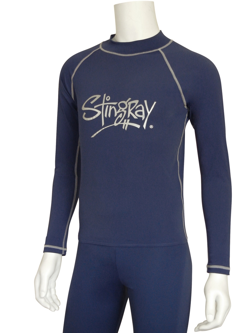Mens Long Sleeved Surf Shirt with surf logo across the chest and contrasting flatlock stitching. Made from excellent Chlorine resistant fabric which is cool, soft, durable and quick drying with maximum sun protection factor - UPF 50+ which blocks > 97.5% of the suns UV radiation giving excellent UV protection.