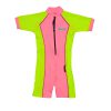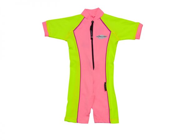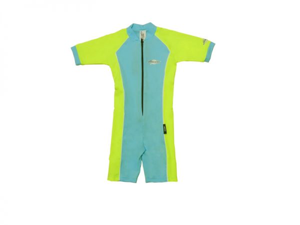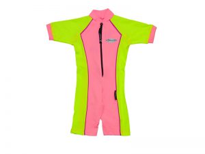 The sunsuit is made from excellent Chlorine resistant fabric which is cool, soft, durable and quick drying with maximum sun protection factor - UPF 50+ which blocks > 97.5% of the suns UV radiation giving excellent UV protection.