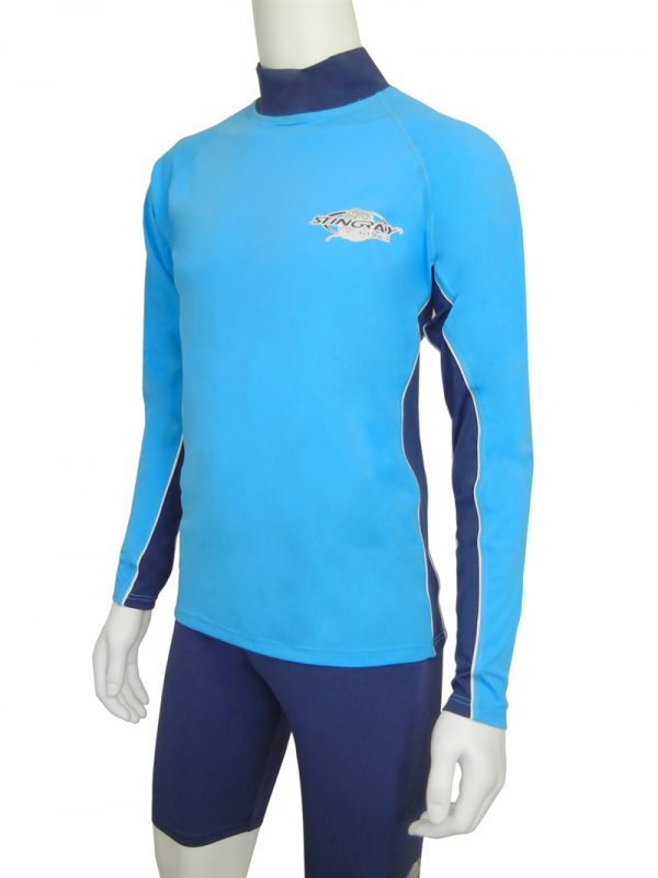 Adults Unisex Rash Shirt with long sleeves made from excellent Chlorine resistant fabric which is cool, soft, durable and quick drying with maximum sun protection rating UPF 50+ which blocks > 97.5% of the suns UV radiation giving excellent UV protection - Comfortable to wear, excellent stretch and recovery - retains colour and shape. Looks good with swim shorts or board shorts.