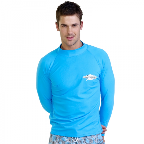 Adults Unisex Rash Shirt with long sleeves made from excellent Chlorine resistant fabric which is cool, soft, durable and quick drying with maximum sun protection rating - UPF 50+ which blocks > 97.5% of the suns UV radiation giving excellent UV protection.