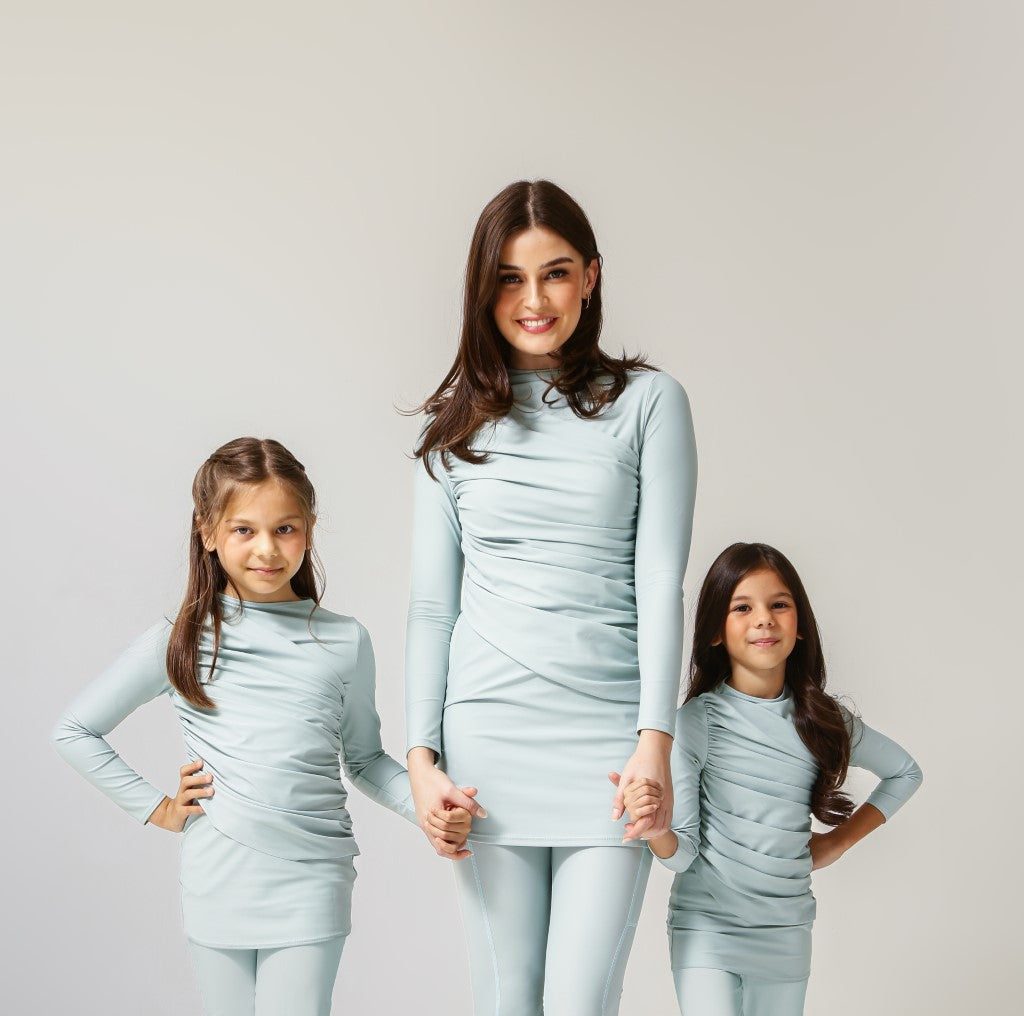 Just like our adult swimwear range, we want our daughters when growing up to associate swimwear with more than just a one-piece or a bikini. Remembering back to our own journeys through puberty and adolescence, we believe it is important to move away from the concept of a ‘beach body’ and all the associated pressures. Instead, our aim is to empower our daughters and yours, to know that they are beautiful, regardless of how much skin they choose to show or how they choose to dress at the beach or the pool.