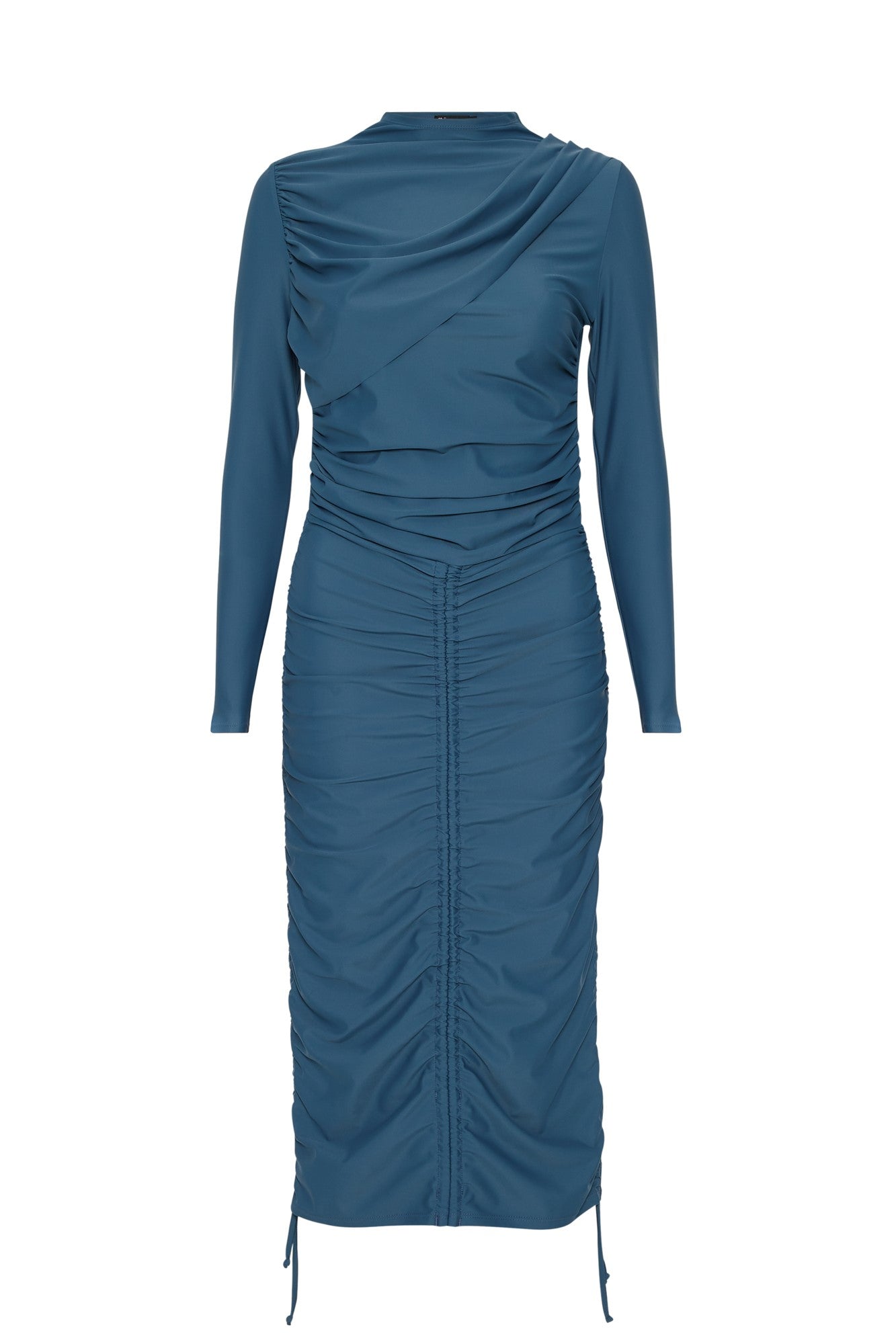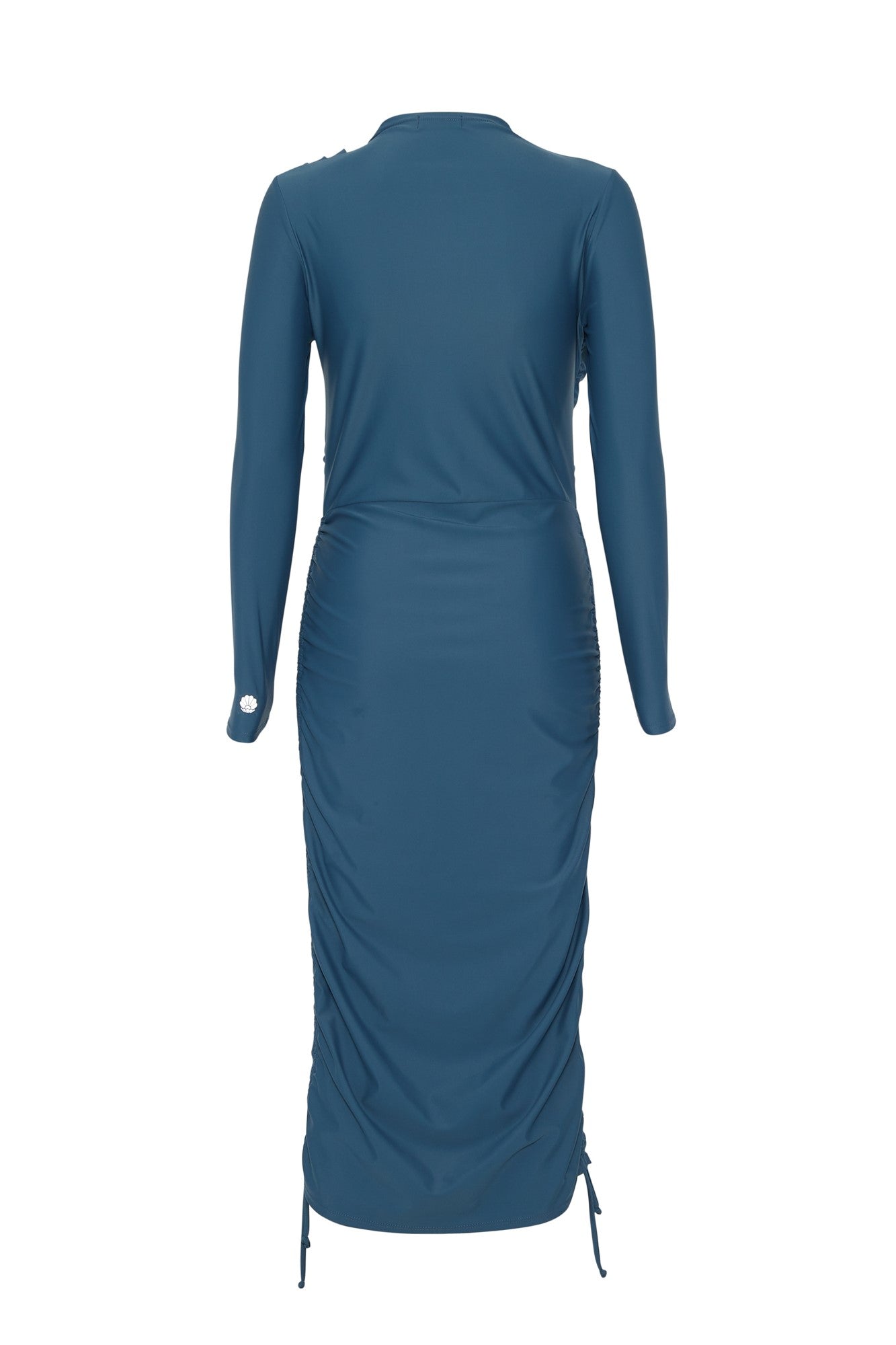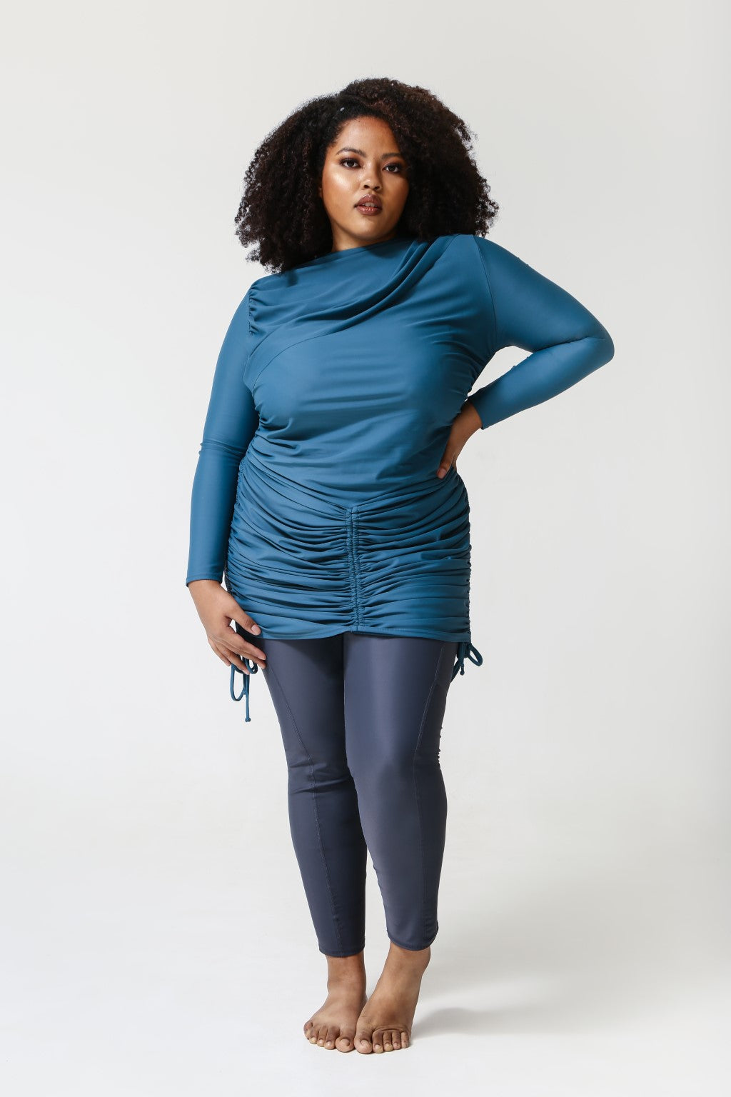 Inspired by the rolling waves of the sea, Isla is our adjustable length Swim Dress with ruche and shawl detailing. Our most versatile Swim Dress yet, Isla is designed to cater to your length preferences. By adjusting any or all of the three drawstrings, the dress can be extended all the way to your knees. Whilst the fit of the dress sits close to your body and accentuates your figure, the ruche detailing adds dimension in order to complement any body type.